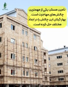 بزرگترین چالش، خرید یا اجارهی خانهای مطمئن و استاندارد است. بسیاری از افراد نمیخواهند در ابتدای مهاجرت، سرمایهی خود را در خانههای قدیمی و کمکیفیت و حتی نسقی به خطر بیندازند.